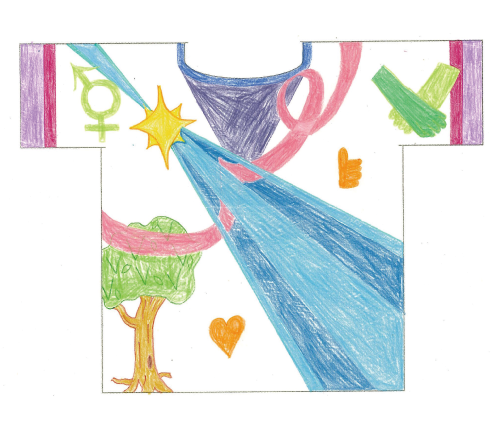 いろんな色の星を地球の周りに飾って、世界中でいろんな色(多様性)を認められるようになってほしいと願いを込めました。