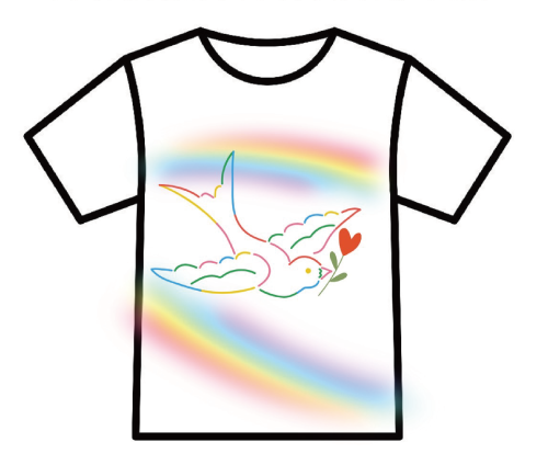 世の中にはいろいろな個性が集まっているので、たくさんの色があるということを表すために、いろんな色がある虹色をベースにしました。鶏が加えているハートの花は、幸せや思いをたくさんの所に届けるために飛び回っている様子を表しました。